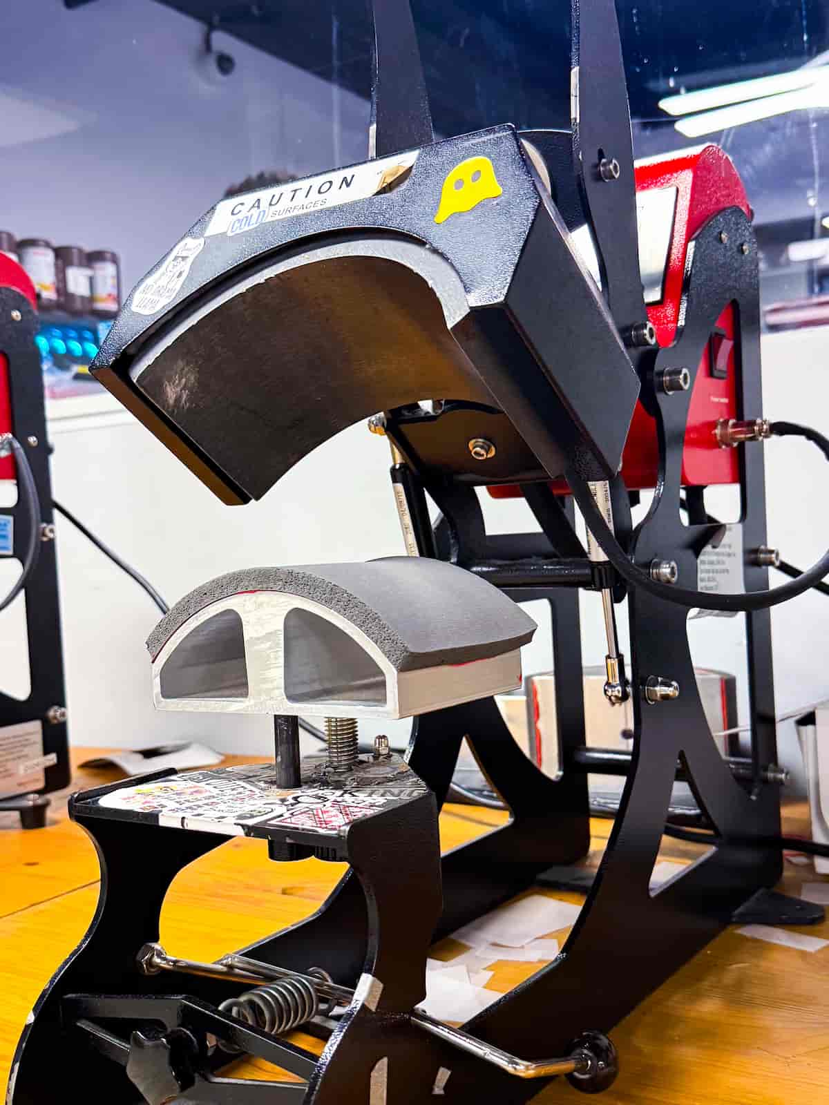 Presele pentru șepci au o formă curbată specială care se potrivește perfect pe suprafața rotunjită a acestora.