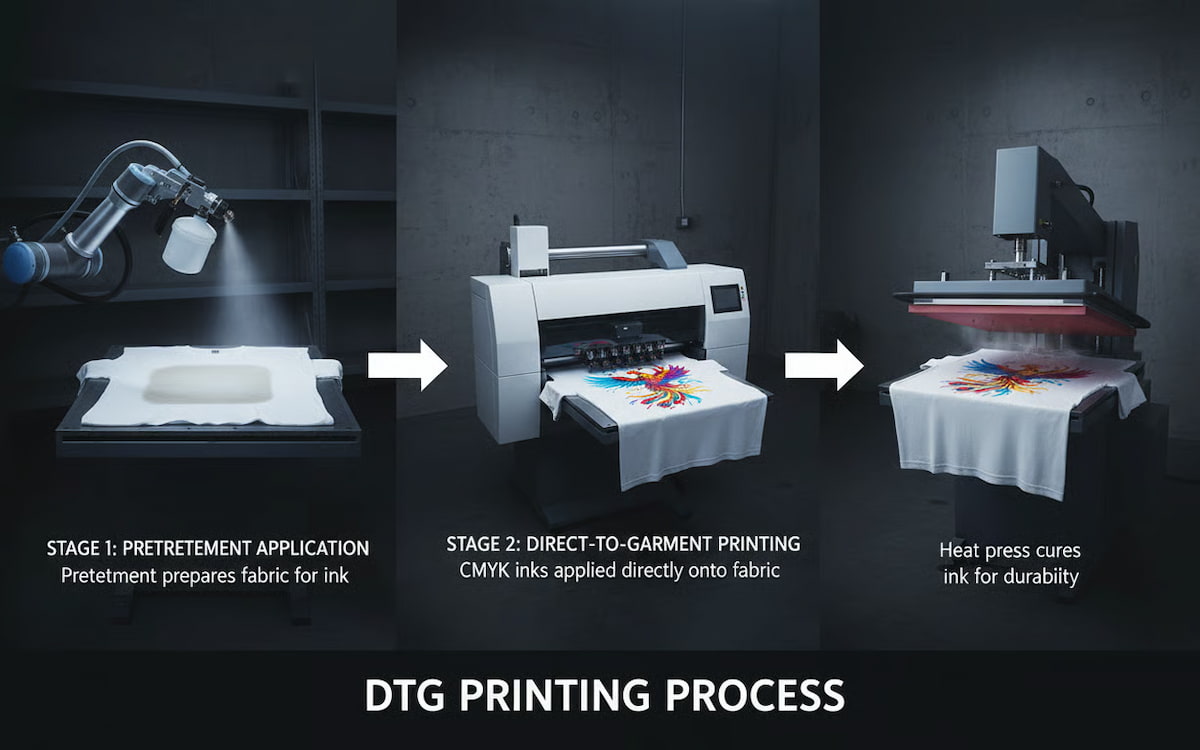 Cum funcționează imprimanta tricouri DTG: procesul de imprimare pas cu pas de la pretreatment DTG la produsul final