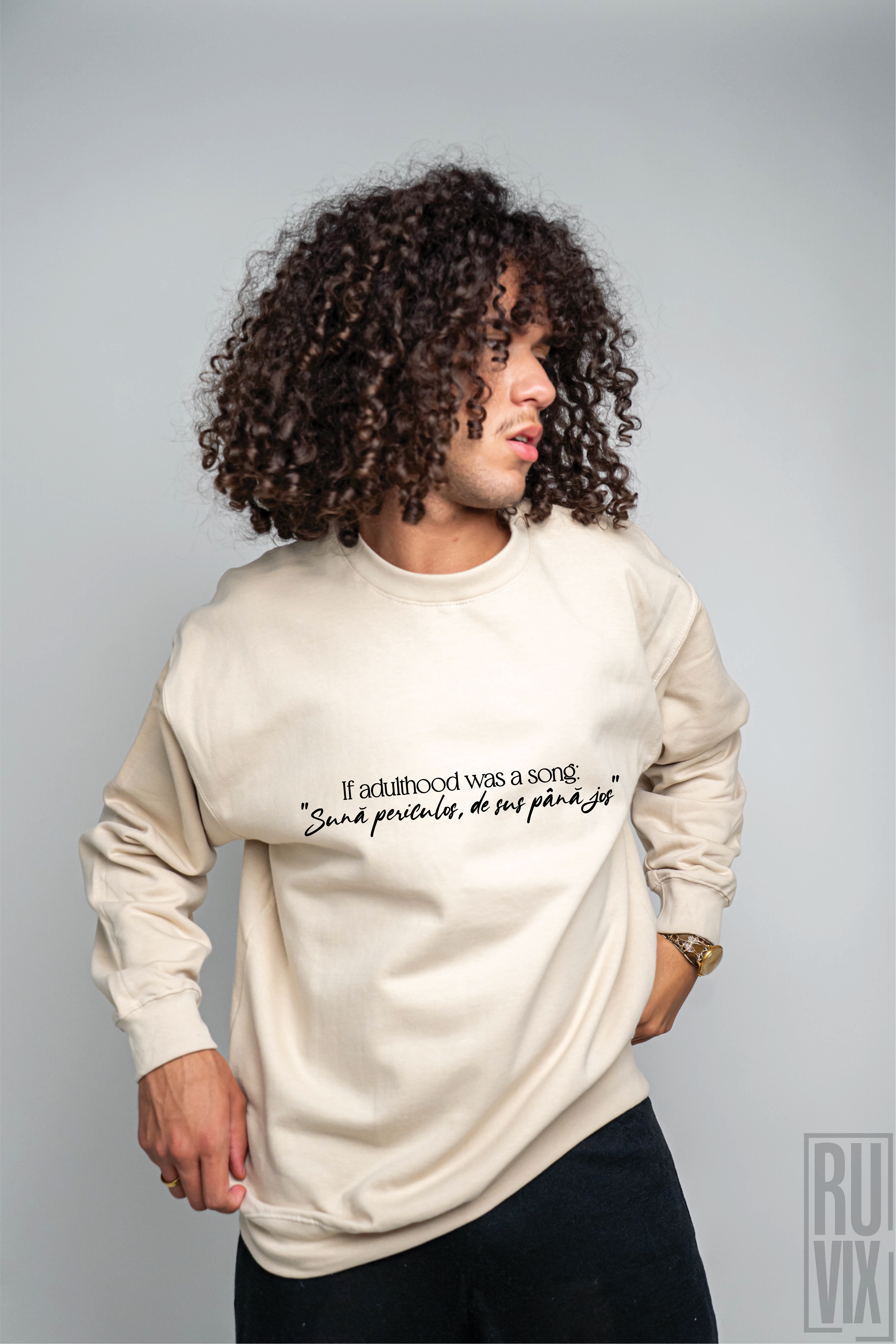 Bluza „Sună periculos” este imnul celor care iau în piept viața de adult.