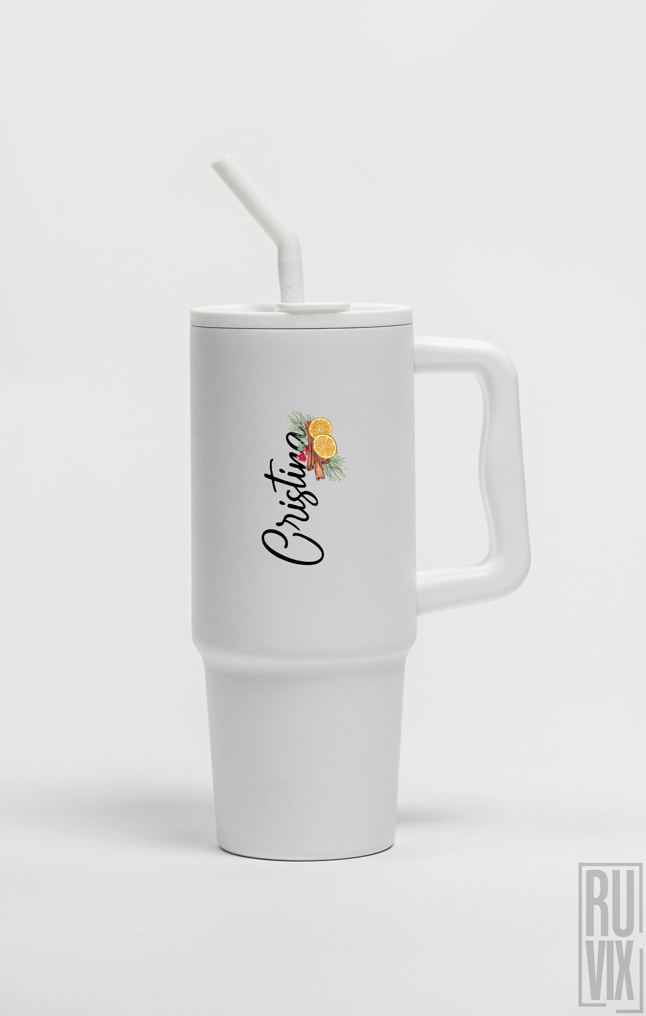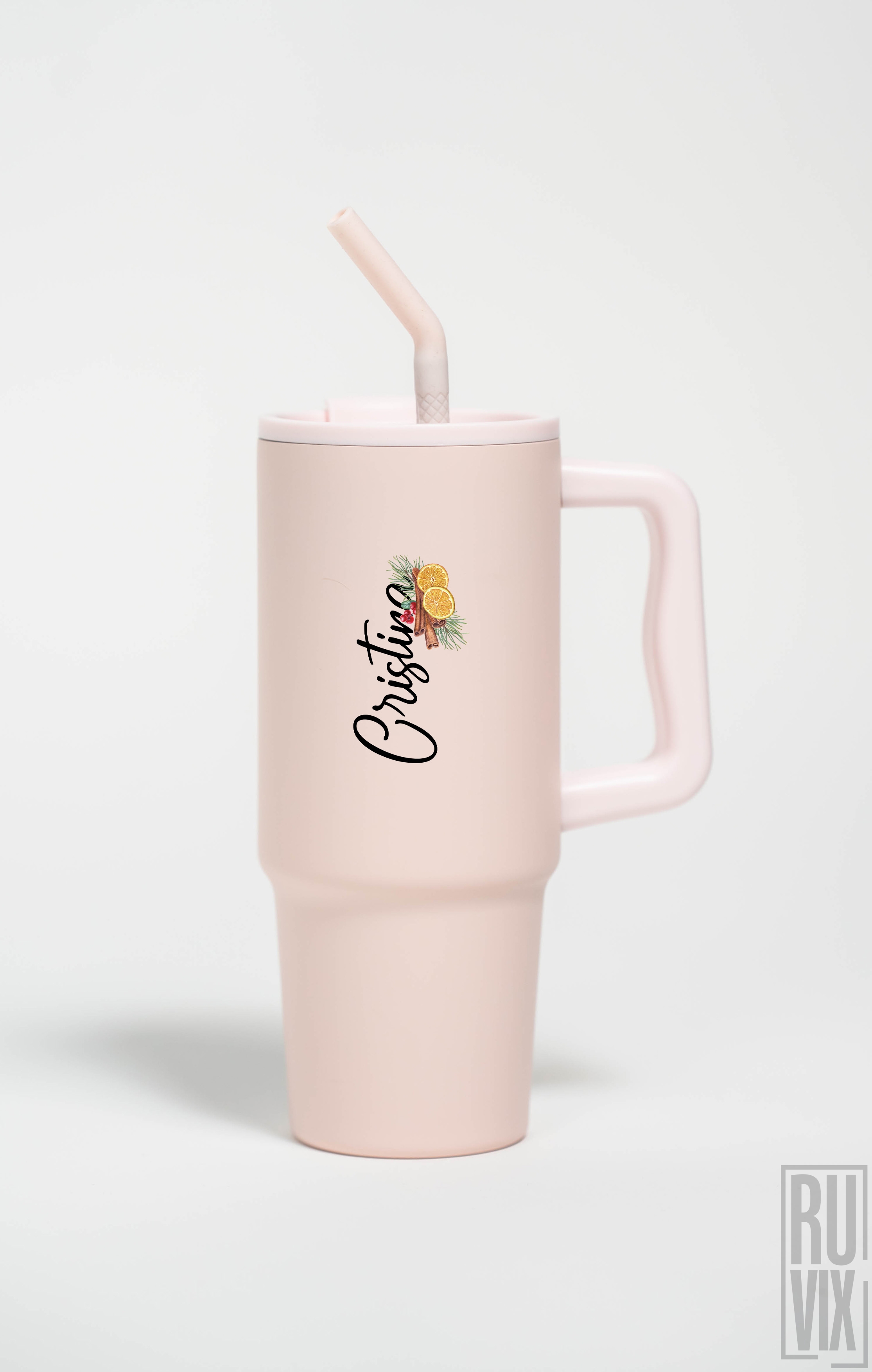 Tumbler deluxe de 900 ml cu mâner și pai – lux, sustenabilitate și personalizare în fiecare detaliu.