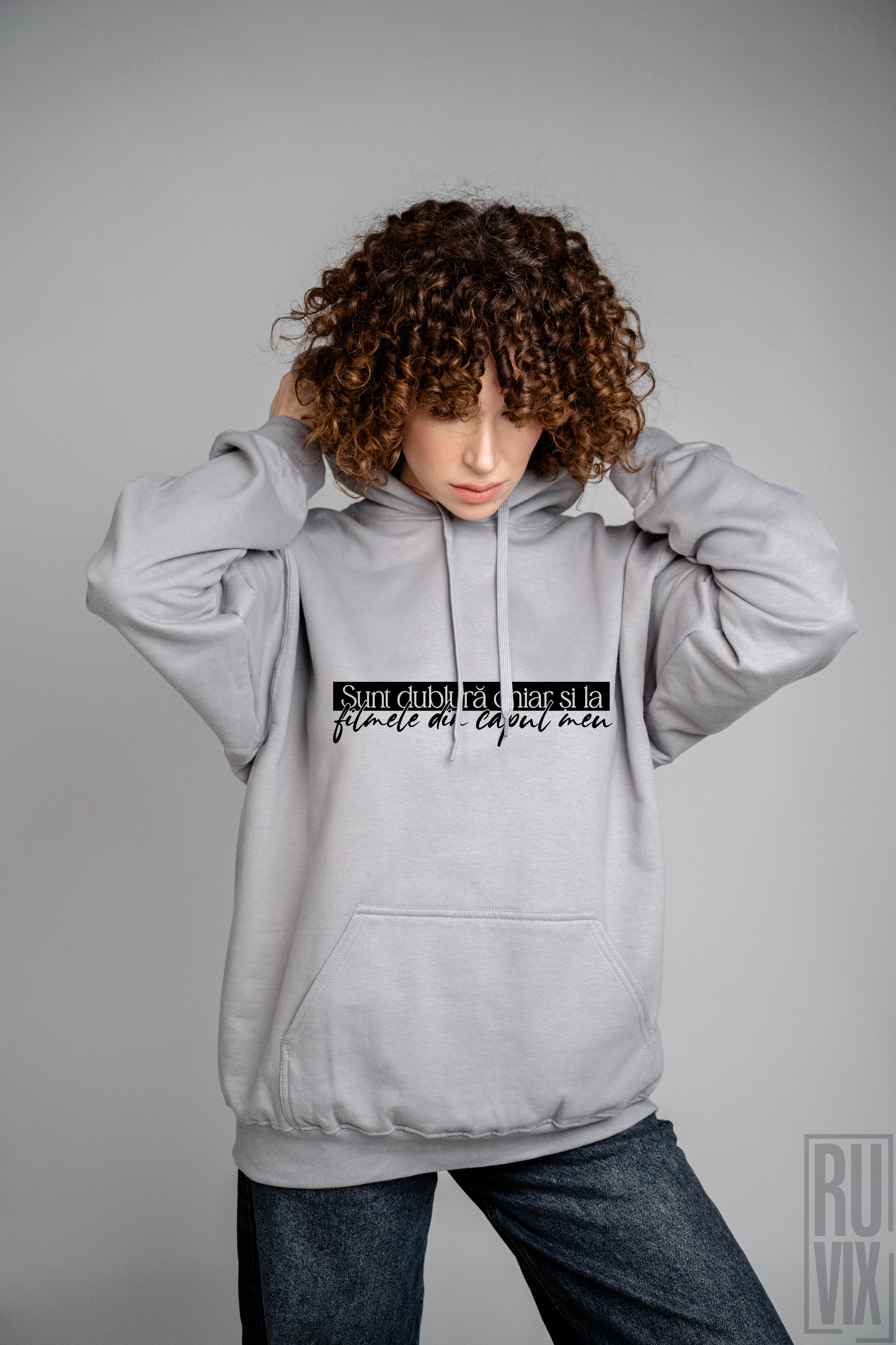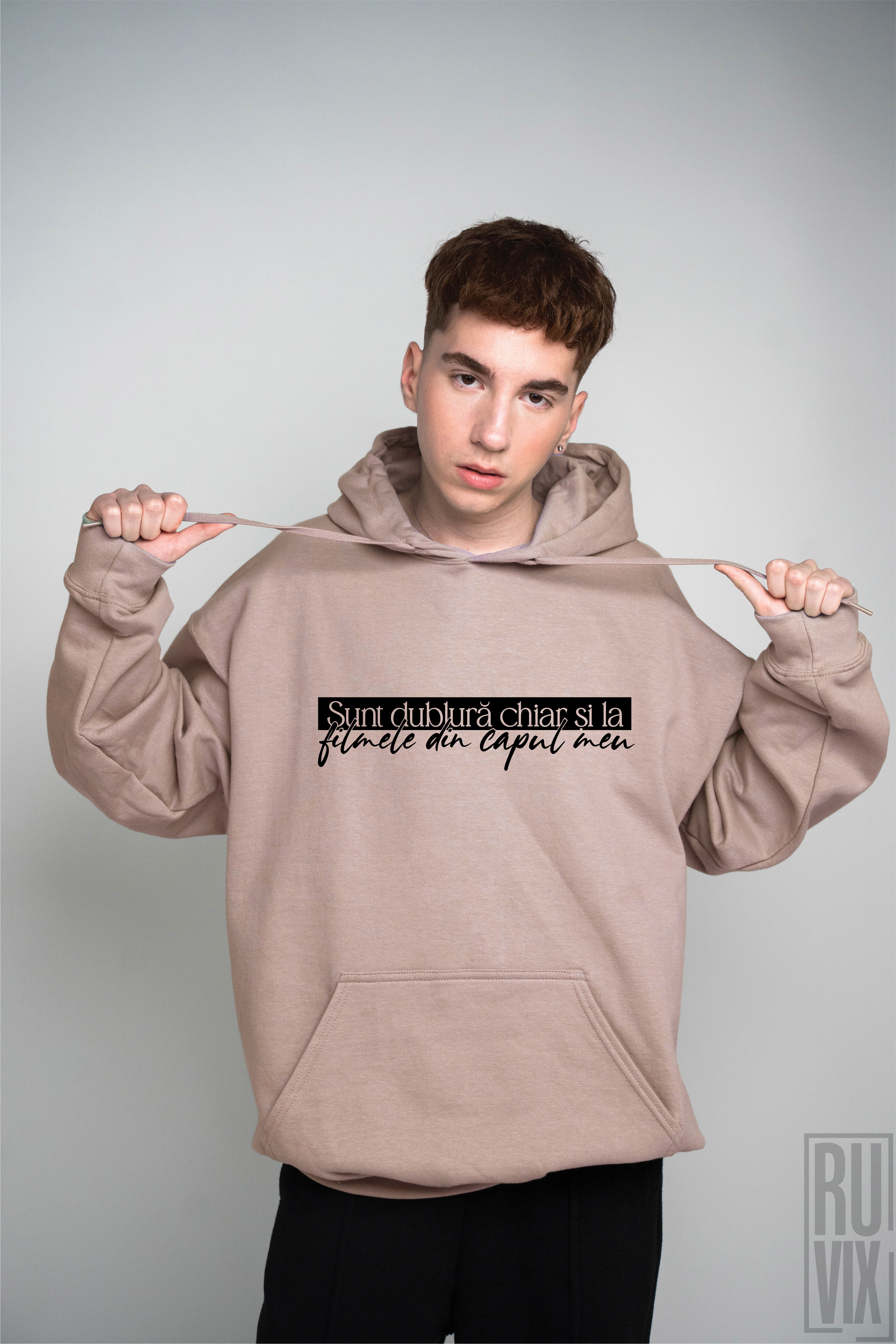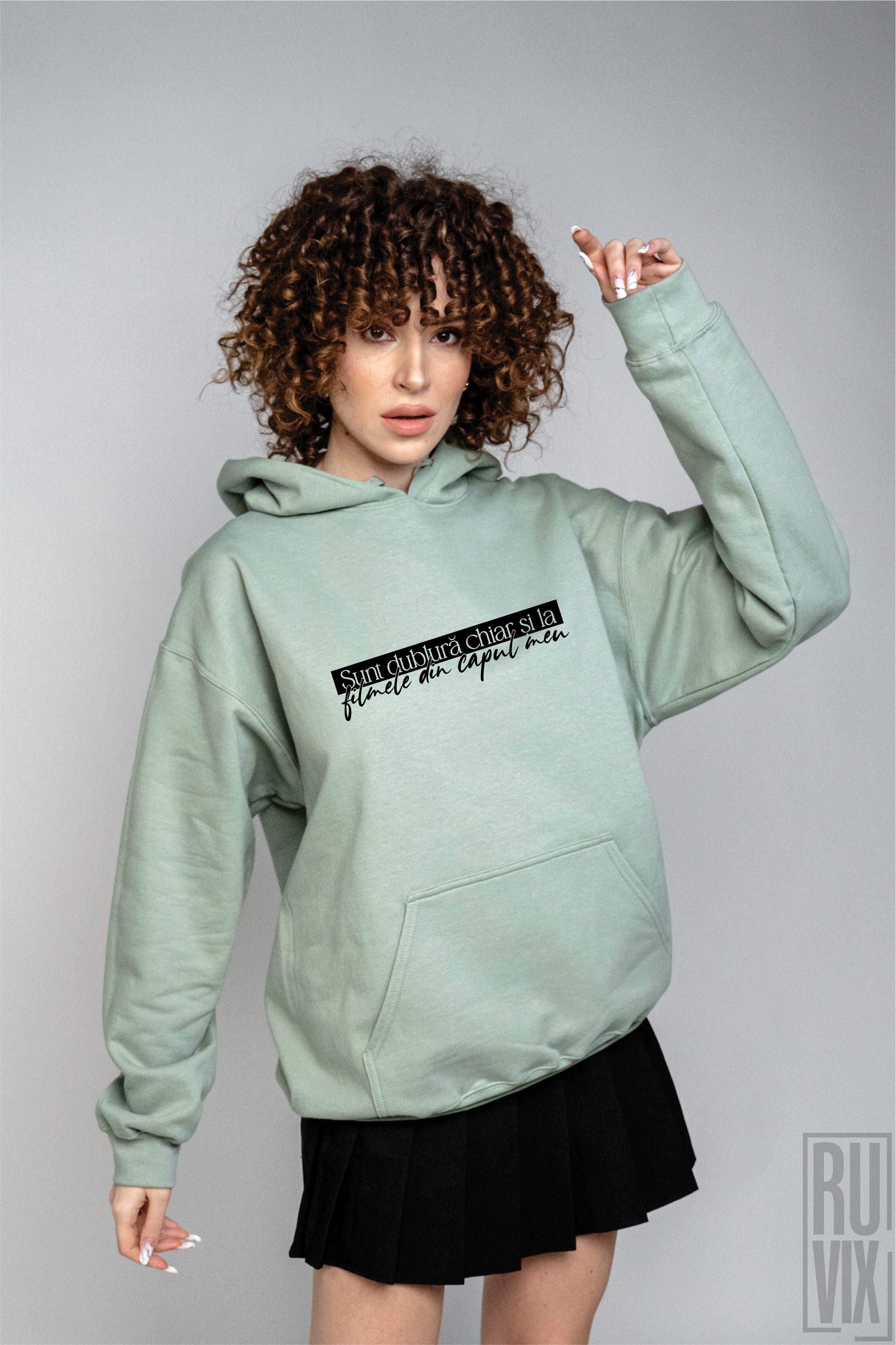 Hanoracul „Filmele din capul meu” este pentru cei la care vocile câștigă de multe ori. Acest hanorac combină umorul, nostalgia și confortul.