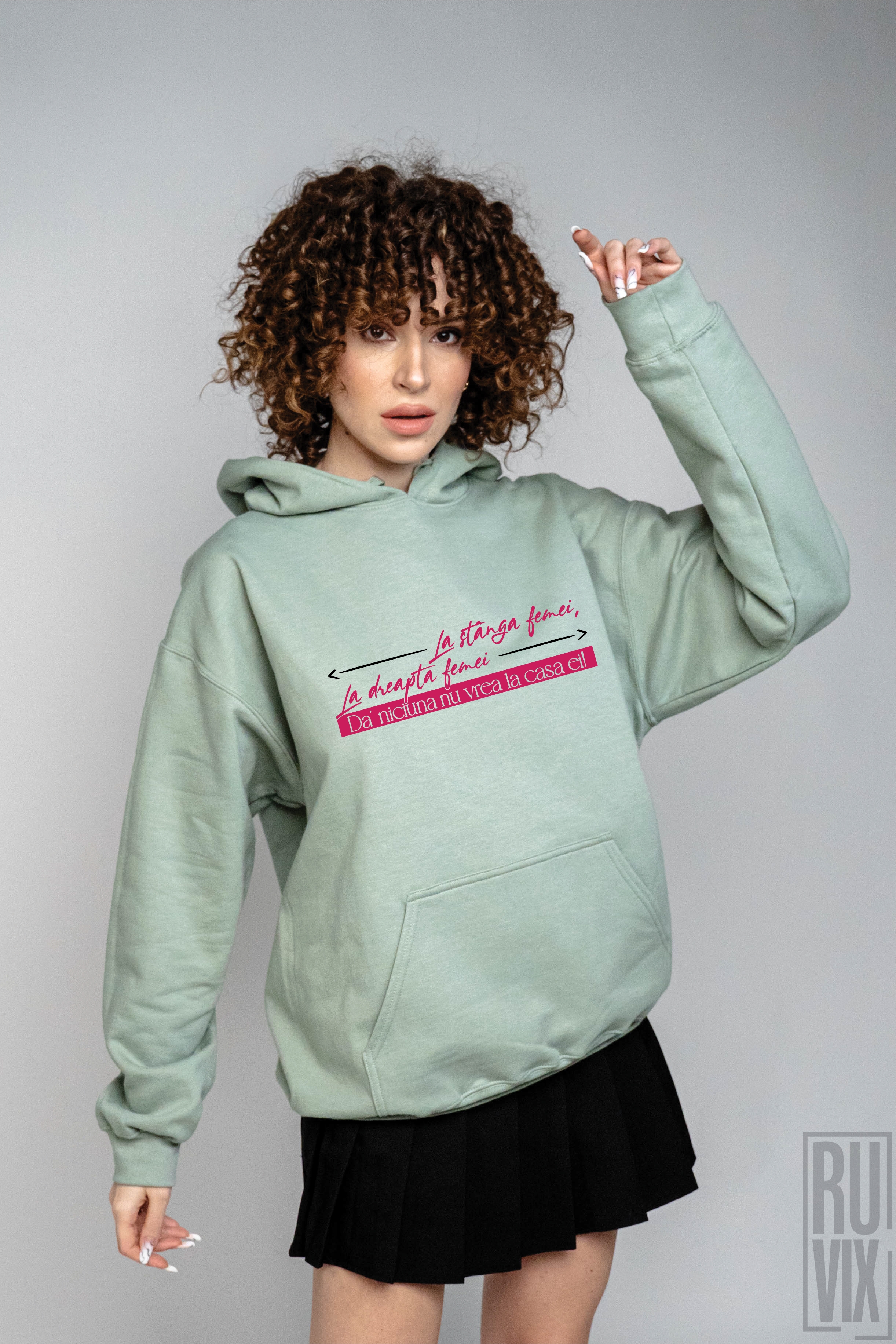 Realizat din bumbac moale și plăcut la atingere, are croială oversize și glugă reglabilă – perfect pentru zilele lejere sau pentru un outfit relaxat, cu atitudine.