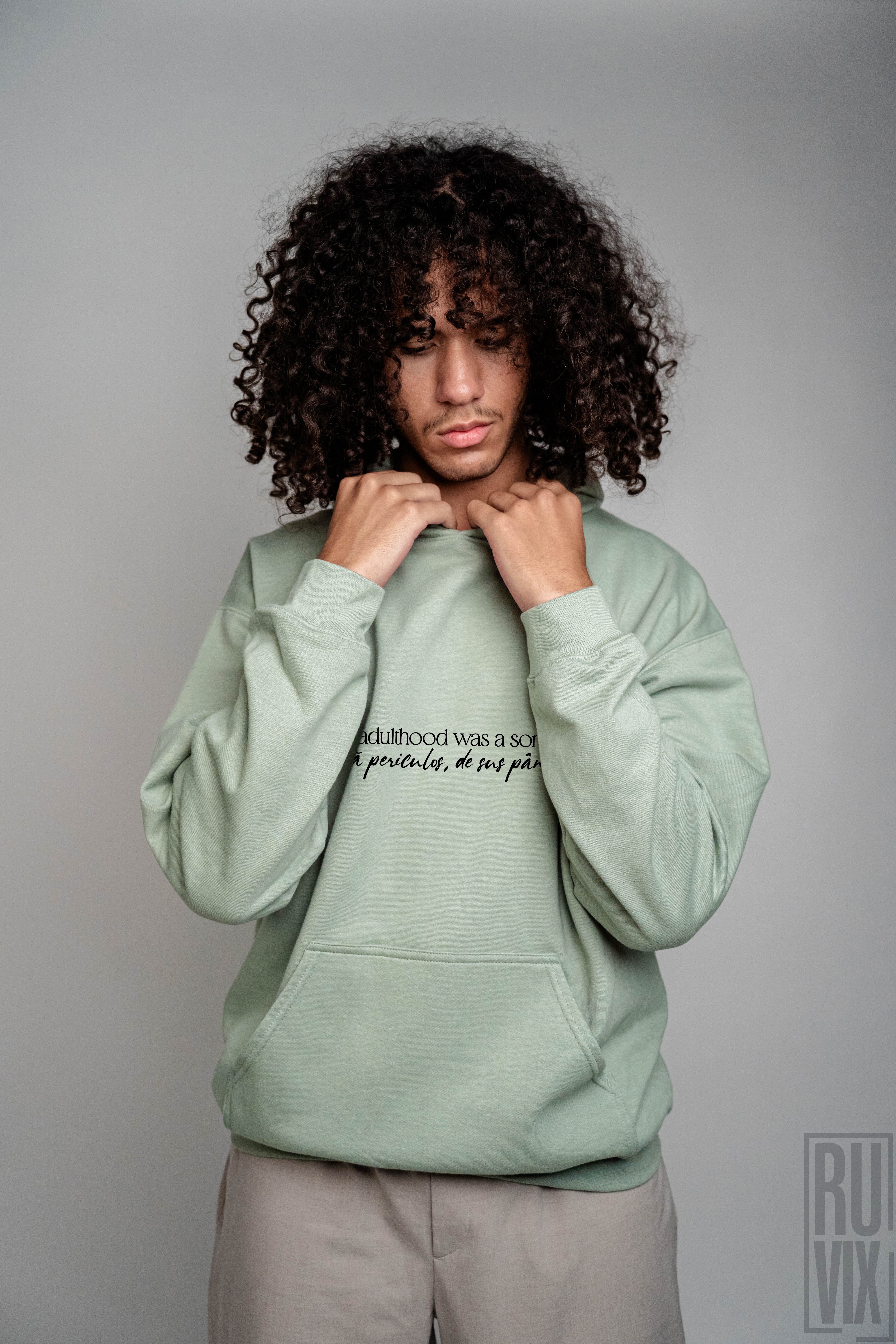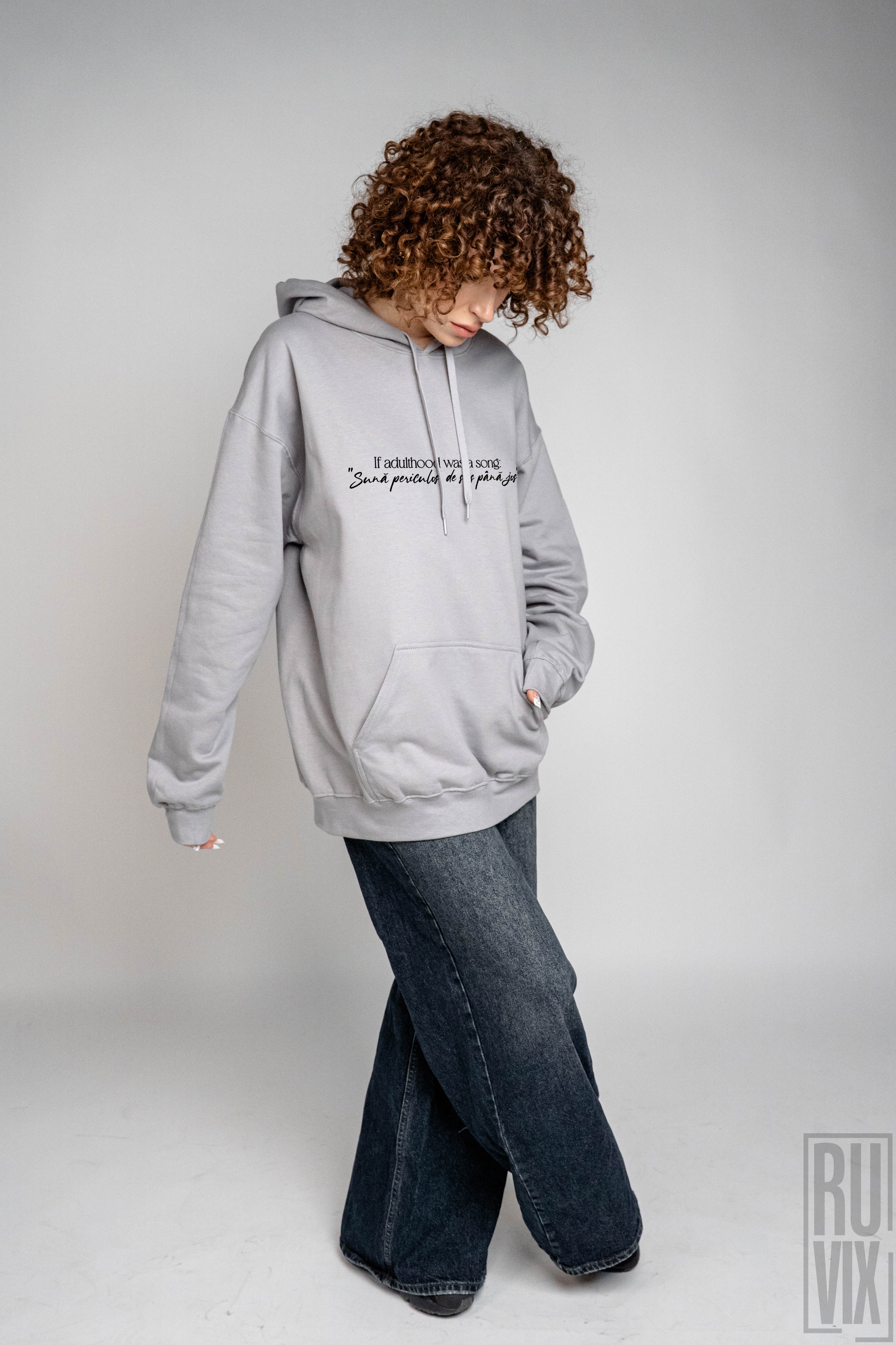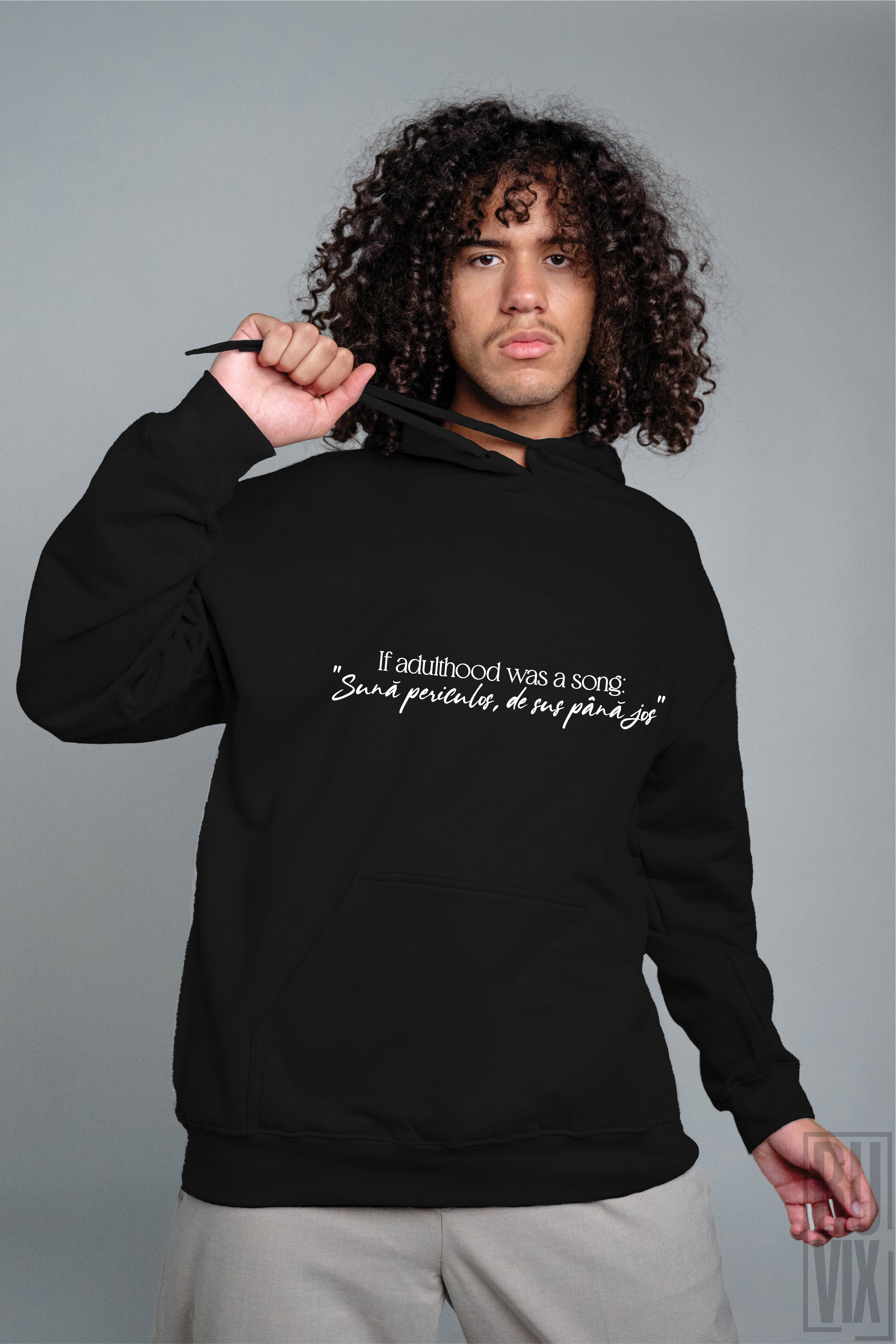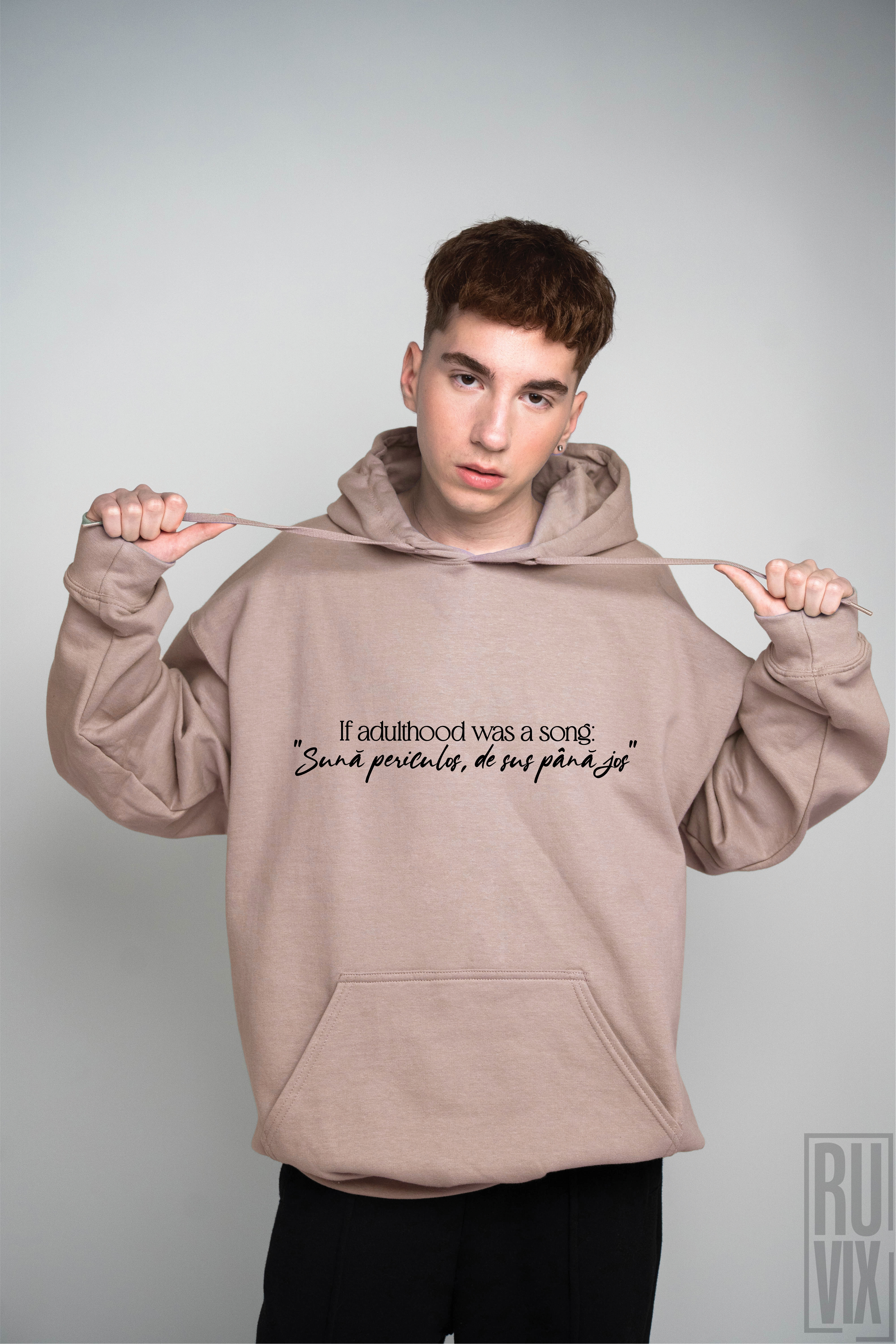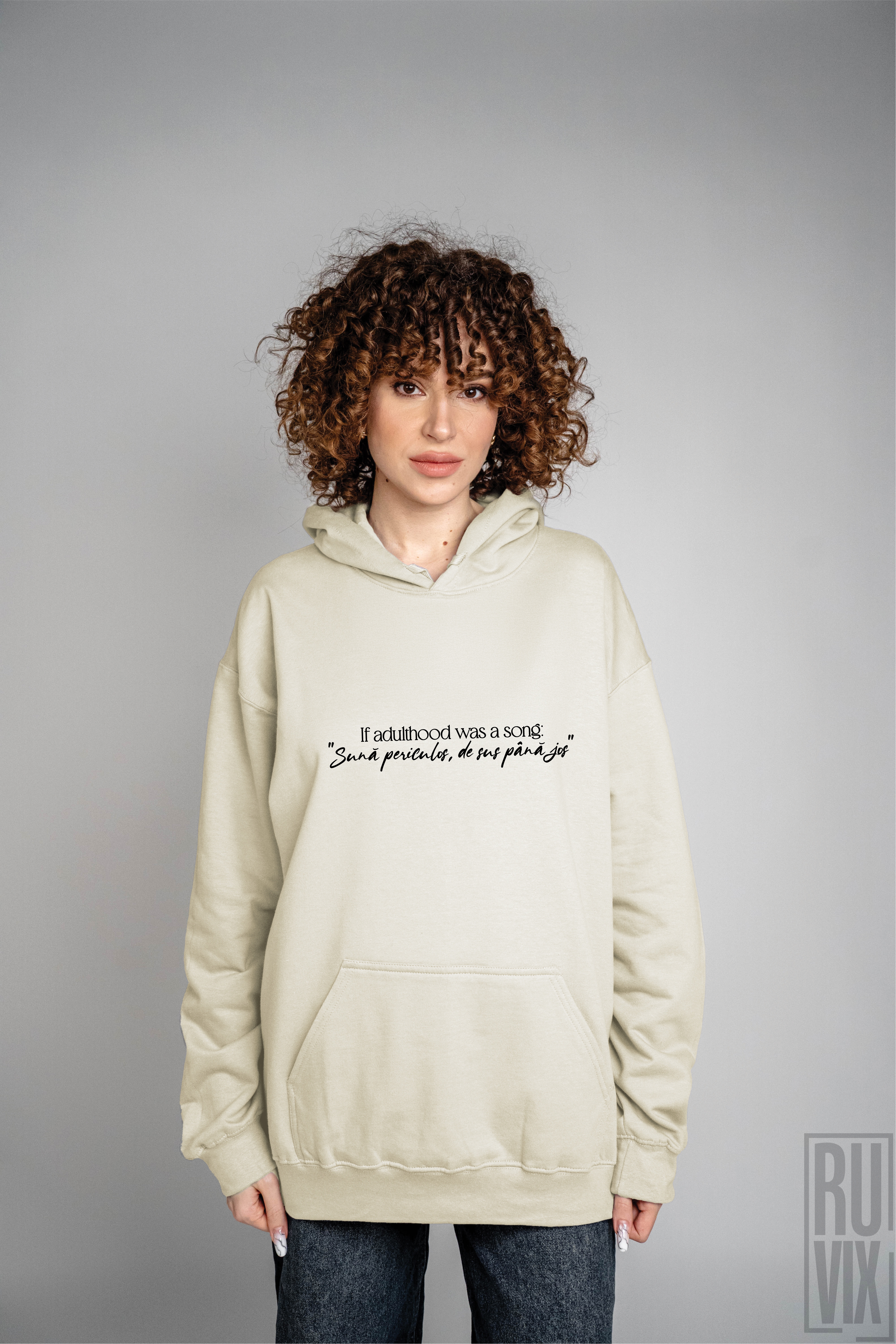 Hanoracul „Sună periculos” este imnul celor care iau în piept viața de adult. Acest hanorac combină umorul, nostalgia și confortul.
